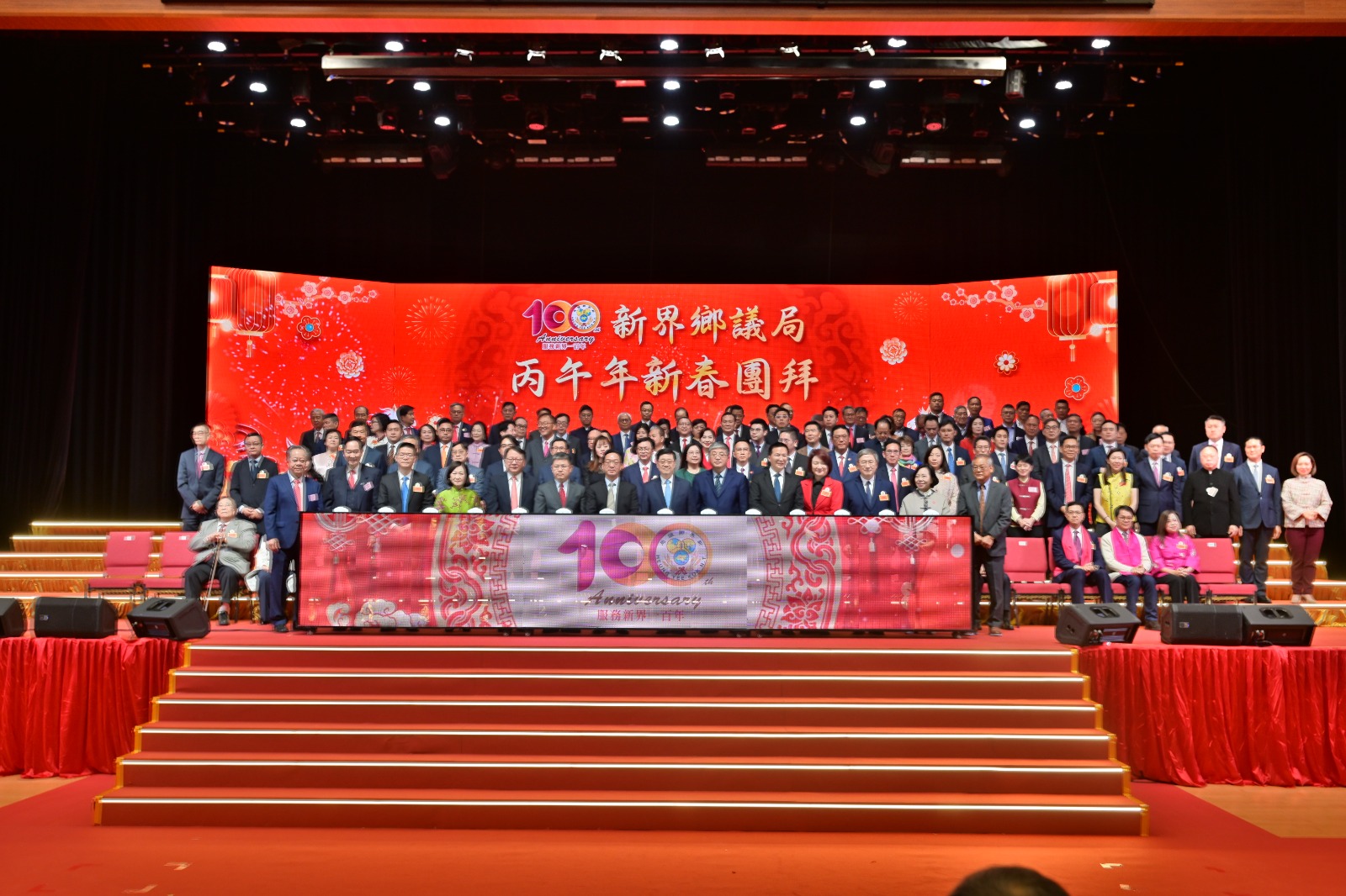 2026年2月23日(農曆正月初七),新界鄉議局於其大樓大劇院舉行新春團拜暨百年慶典啟動禮,場面盛大,逾千嘉賓歡聚。活動由行政長官李家超及中聯辦副主任羅永綱主禮。出席嘉賓陣容鼎盛,包括外交部駐港公署副特派員張長偉、國安公署副局長謝志祥、政務司司長陳國基、立法會主席李慧琼、行會召集人葉劉淑儀及民青局局長麥美娟等多位政府高層、議員及社團首長。各界賢達冠蓋雲集,共同見證鄉議局邁向百年的重要時刻,氣氛熱烈歡騰。