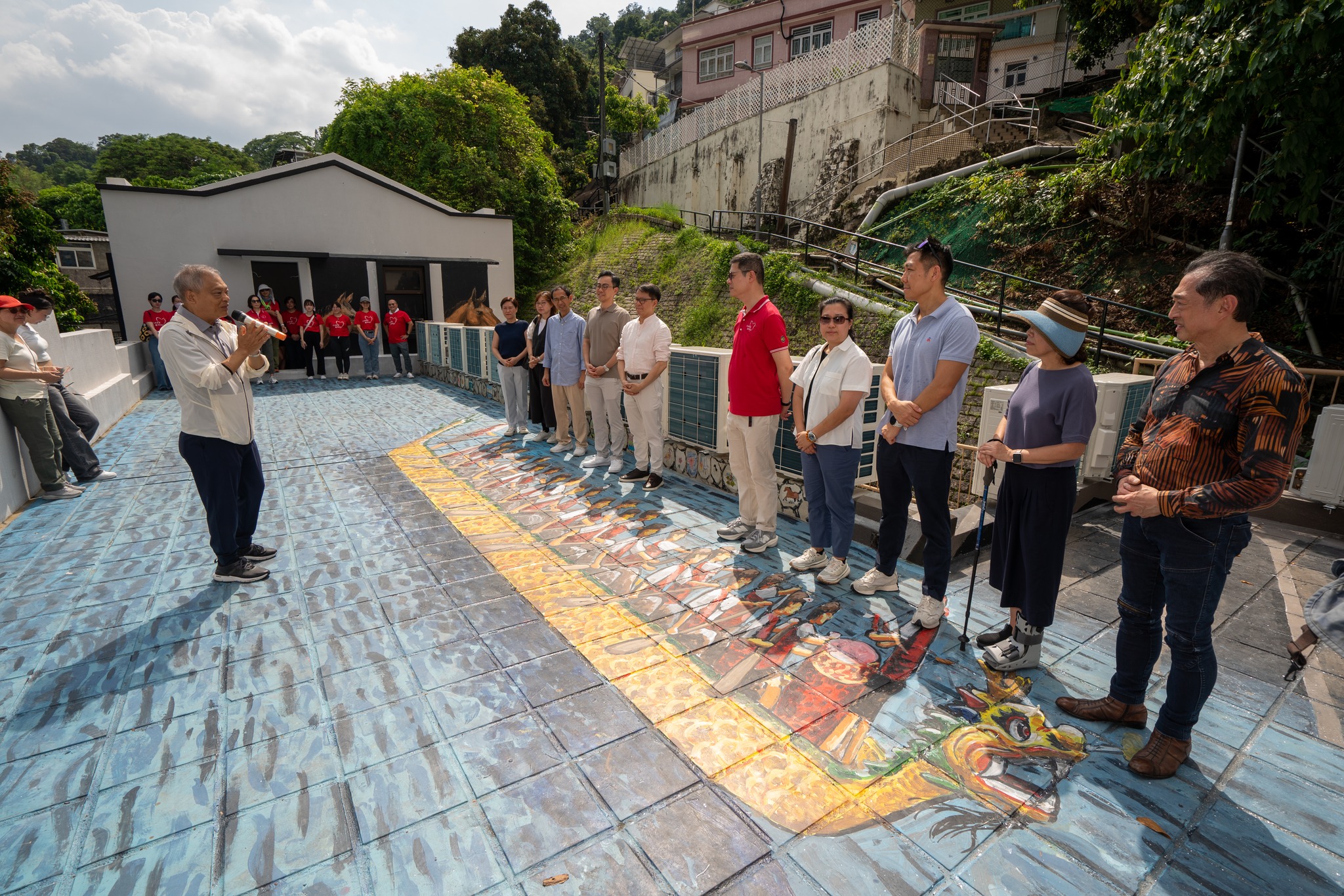本局與香港賽馬會合辦的「鄉情畫意」鄉郊彩繪計劃 — 沙田鄉壁畫收筆禮已於7月5日在沙田鄉事委員會舊址順利舉行。荷蒙沙田鄉事委員會莫錦貴主席、本會陳嘉敏主任委員、香港賽馬會對外事務部主管鄭琪先生、行政會議成員及立法會議員陳克勤先生、沙田民政事務專員余懷誠先生、沙田警區警民關係主任成偉豪總督察、沙田區康樂事務經理周珮珊女士、沙田區助理福利專員蔡玉玲女士、沙田區議員潘國山先生及羅棣萱女士,以及畫家林旭輝先生蒞臨擔任主禮嘉賓,為壁畫添上最後一筆,象徵沙田壁畫正式完成。謹此對所有出席嘉賓表示衷心感謝。繼沙田鄉之後,「鄉情畫意」鄉郊彩繪計劃將陸續到訪其他鄉,為各鄉注入更多藝術色彩。