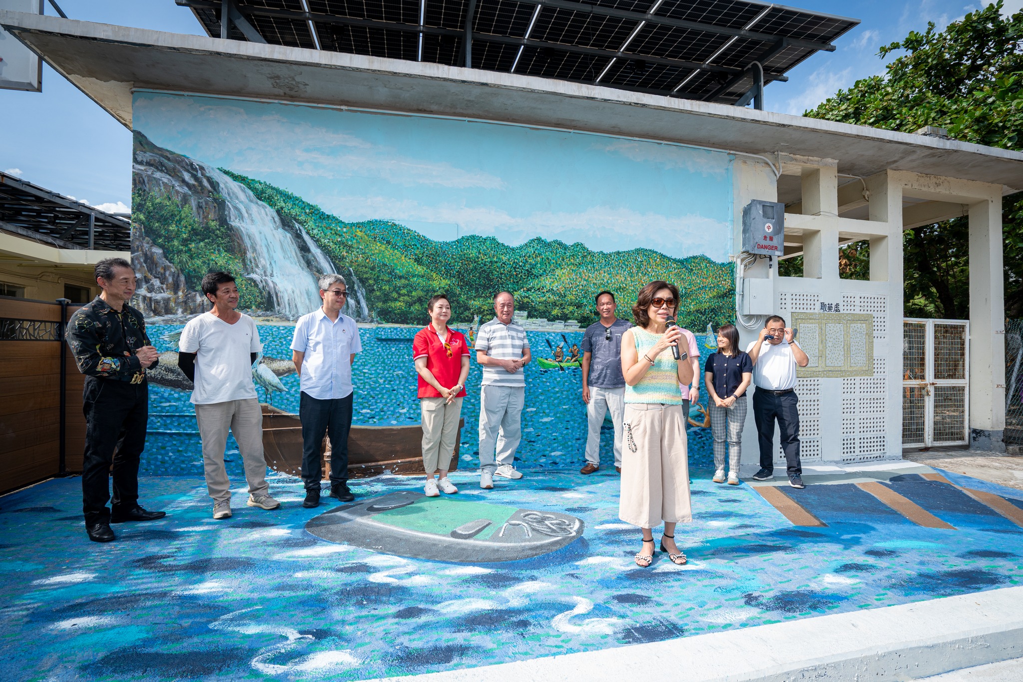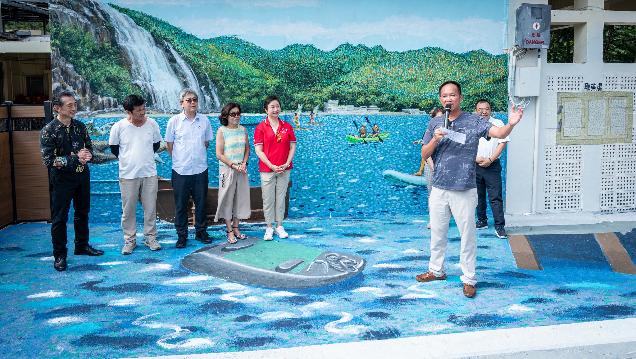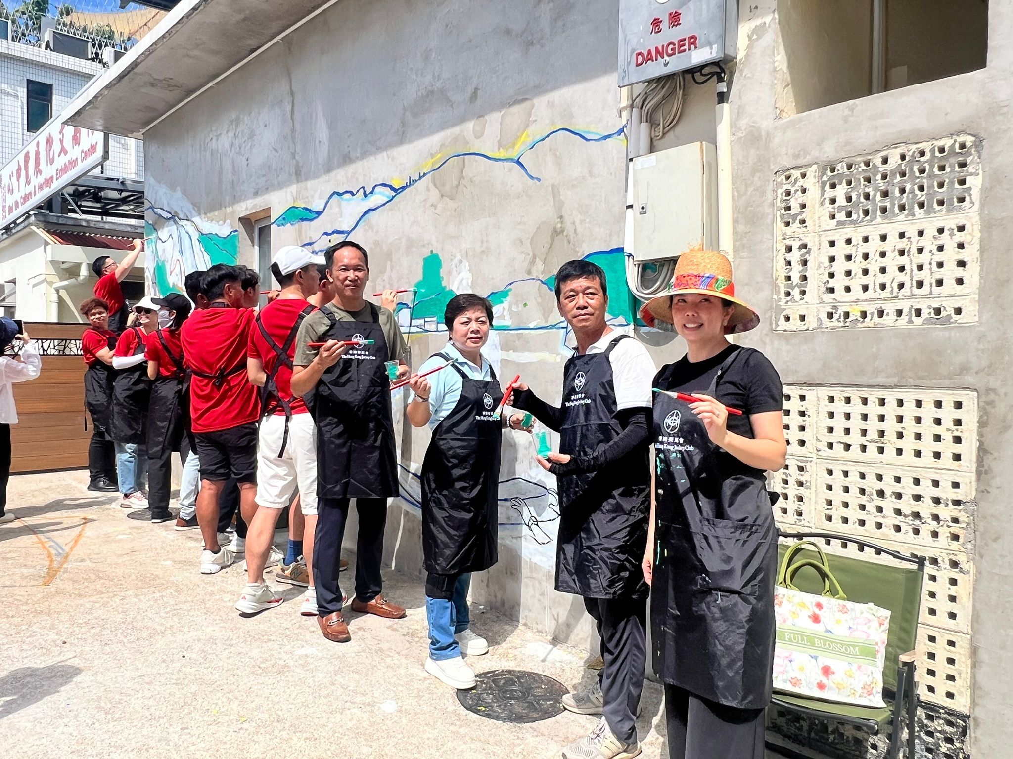 本局聯同香港賽馬會合辦的「鄉情畫意」鄉郊彩繪計劃 — 梅窩壁畫收筆禮已於10月11日下午在梅窩文化展覽中心順利舉行。荷蒙梅窩鄉事委員會黃文漢主席﹑香港賽馬會對外事務部總經理孫婉芳女士﹑離島民政事務處聯絡主任主管曾珮儀女士﹑梅窩學校黃明發校長、新渡輪董事長黃烈彰先生、珠江船務董事長劉廣輝先生、本局新界傳統文化委員會陳嘉敏主任委員以及畫家林旭輝先生蒞臨擔任主禮嘉賓,為壁畫添上最後一筆,象徵梅窩壁畫正式完成。繼梅窩之後,「鄉情畫意」鄉郊彩繪計劃將陸續到訪其他鄉,為各鄉注入更多藝術色彩。