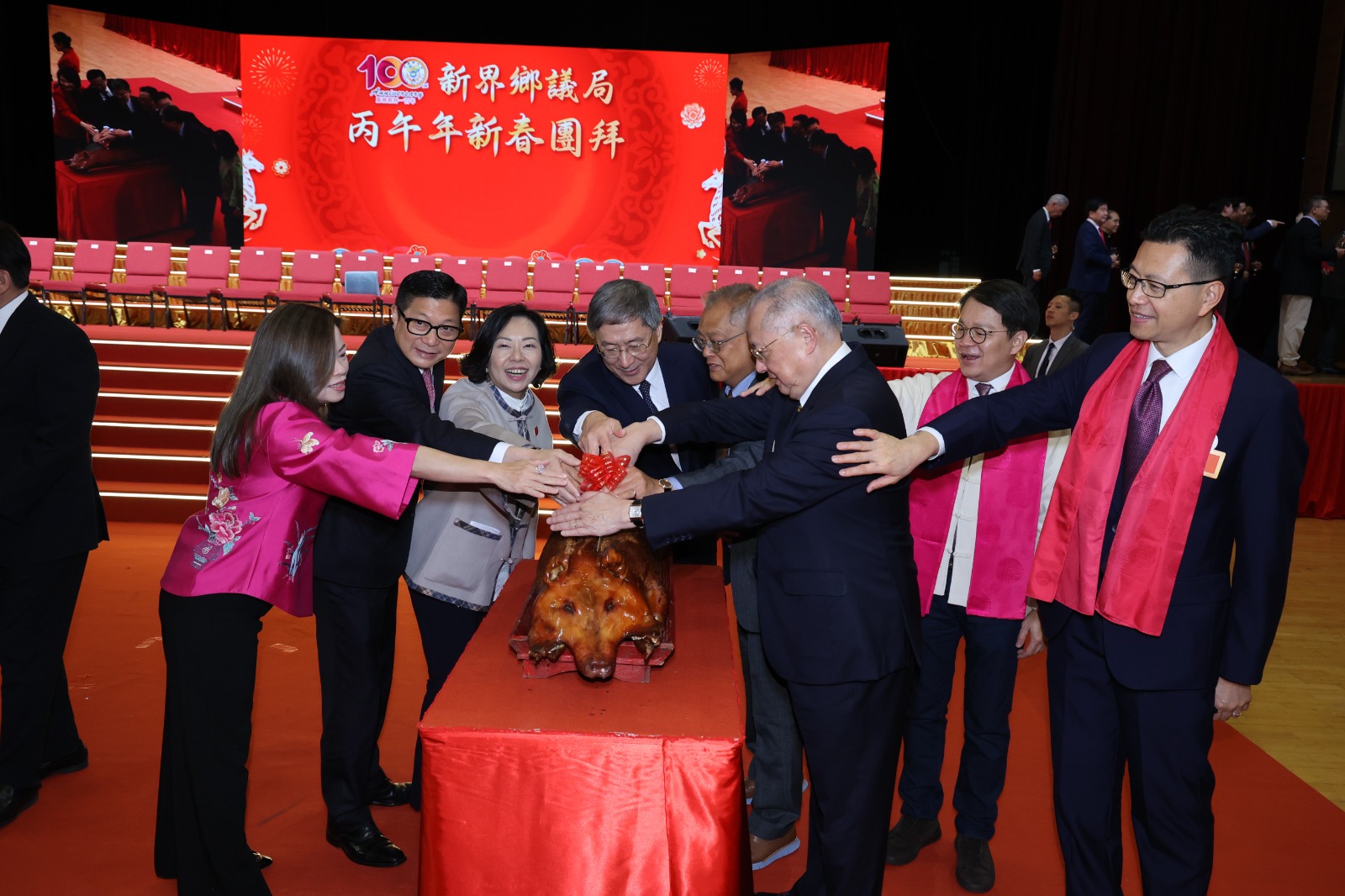 活動還包括大合照、祝酒儀式及切金豬等傳統環節。是次新春團拜不僅弘揚了中華傳統文化,增進了各界情誼,更展現了新界鄉議局繼往開來,支持特區施政,共同維護繁榮穩定,攜手開創香港新篇章的決心與活力。